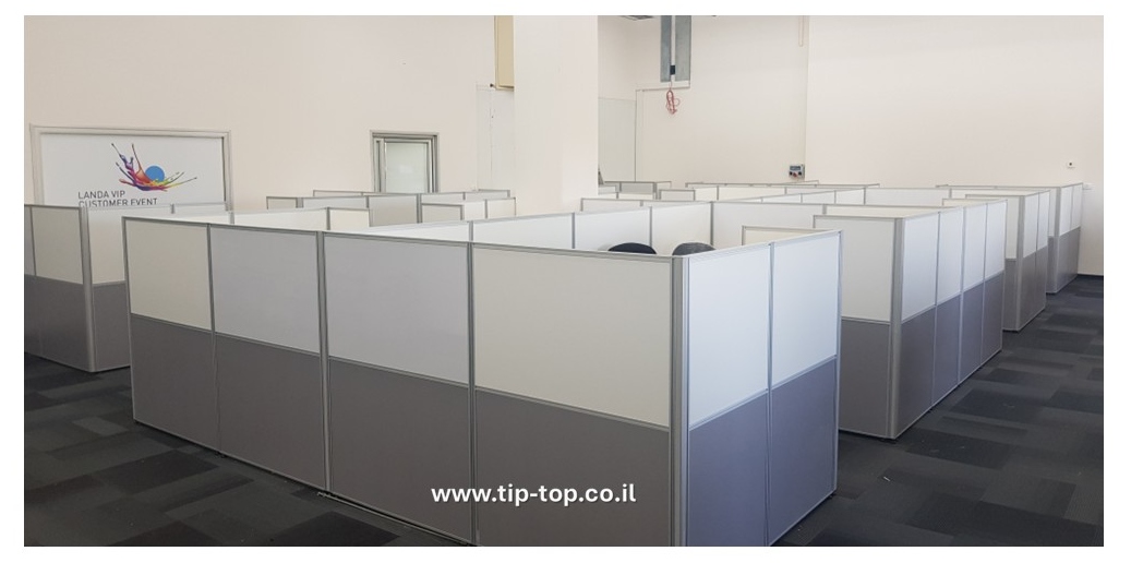 מחיצות הפרדה בעובי 30 מ"מ עשויות מסגרת אלומיניום עם מלמין או ריפוד בגוון לפי בחירה