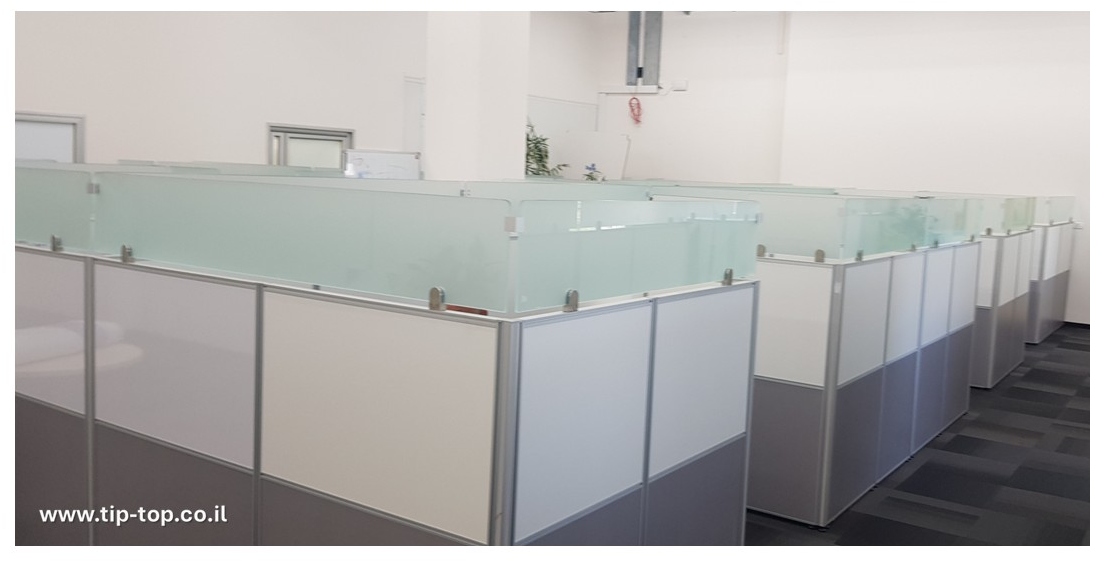 מחיצות הפרדה בעובי 30 מ"מ עשויות מסגרת אלומיניום עם מלמין או ריפוד בגוון לפי בחירה